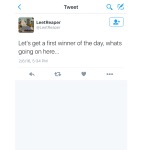 #2040That is good News....Originally posted by Birdman557Leet sent me an email saying he opened a Twitter account with the same name as his SBR handle, I checked it 5 mins ago, still no posts yet, hopefully he'll get started soon.
