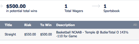So today I'm going with the OVER in the Butler Temple game. Temple has a great defense but let's get real they're not stopping Butler.