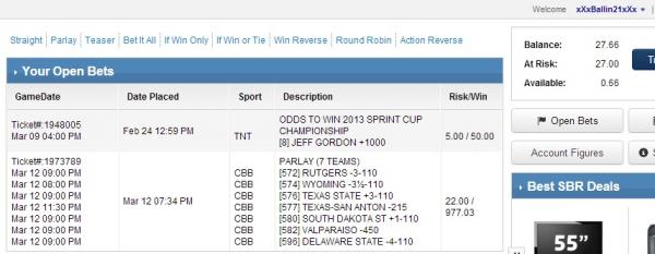 Even though its SBR Points, just need Texas San Antonio to win my 7 team parlay, hope it hits!