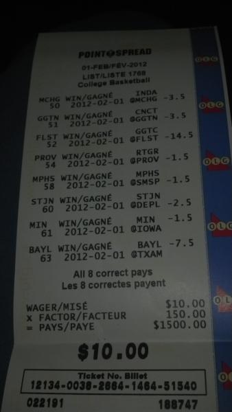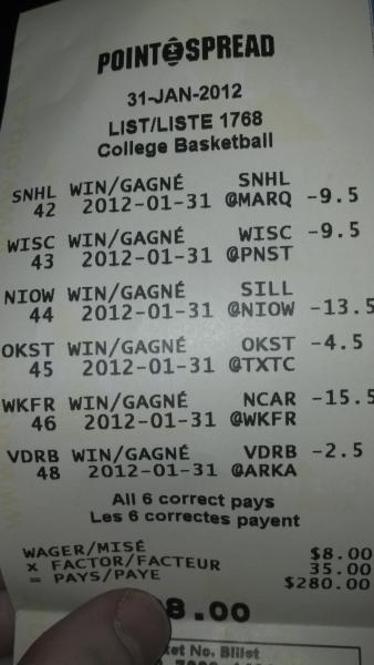 Here is today's 6 team Point Spread ticket