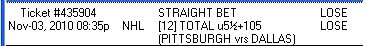 I put 6 SBR points on Dallas Stars win over Pitsburg Penguins. Dallas won, but I didn't get any points. why?