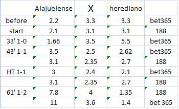 #7I was testing live on paper some trading strategies using exchange betting (betfair). I wanted to take a big sample of matches and study how the odds at half time were, compared to pre-match ones, but also regarding half time score (and if there was a red card in rare cases).Originally posted by sharlataansI have (not polished) software, that does it. But I am not ready to share it