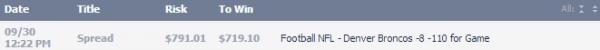 #8Making enough off of DEN thus far betting the DEN+OVER's - to let it ride every week until they dont' win... saving bits along the way of course... they will prolly lose one or two this year... but riding them in between is a MONey play!
