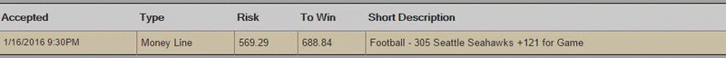 Bet $175.53 0n Seattle -3.5 pays $456.38