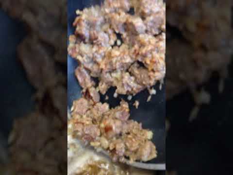 step one, braise the meat, on a bed of cooked down onions, seasoned with garlic, and special DonkLand seasonings on the deer meat itself:
