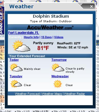 For example, here's the current NYJ @ MIA weather on SBR Odds: