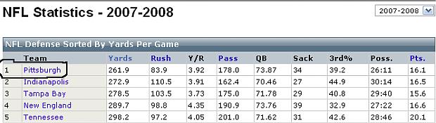 Come playoff time it'll be made perfectly clear that this defense is very, very overrated. I'm sure most of their supporters will find a way to blame Willie Parker's season ending injury, but with or without him, that defense is overrated, and their offensive line is utterly atrocious.Comment