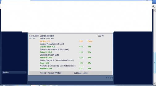 After getting killed on MLB playoffs this past thursday and friday (thanks brewers), I had a good football weekend with NCAA and NFL.