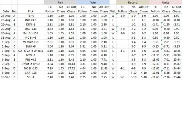 Similar to what I did in the baseball betting thread this year (which has been quite profitable), this will be a simple follow and fade Football Crusher thread. Tgunn11 is kind enough to post this service every day in the service plays section.