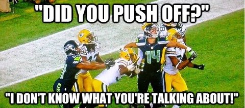 Interviewer to Golden Tate - "Did you push off?" Tate - "I don't know what you're tal