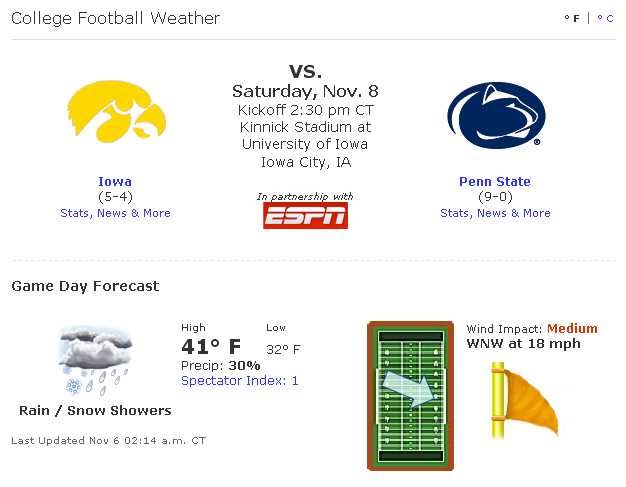If that storm hits and turns to snow... As its currently expected to do. Game could be played with 3 inches of snow on the ground... This would favor Iowa...to cover