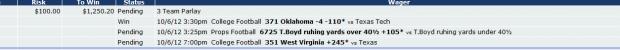 I live in Texas and have lived in Austin and work for a company in Austin. I think this UT team is a tad bit overrated in every aspect and is a bit of a surprise to me as "good" as they are deemed here early in the season. The D was whipped by a less talented OSU team last week. WVU will be able to move the ball, the question of course is can they stop UT? Still not totally sold on Ash being a QB you want to ride in a shootout and I think the revolving running backs for the Horns are more of a detriment than a plus because they lack a go-to-guy or at least the nuts to ride one back more than the others. The WV D is the big question mark, but I think they have enough stops in them against a less potent offense/scheme than what they saw last week against Baylor. I think caught up in that one and people questioning their defense is how good Briles' offense is.That's my two cents and my play this evening along with Tavon Austin Total Catches Over 10.5.