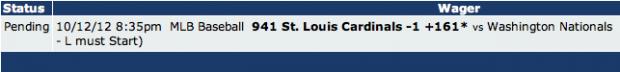 I said "thought I would get lucky if Cards just won by 1" because at least I would have broke even!Comment -