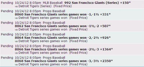 Money LineSan Francisco Giants vs Detroit Tigers for Game. +128 3,000.00 3,840.00 Comment -