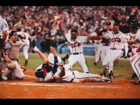 A lotta room in right-center, if he hits one there, we can dance in the streets. The 2-1. Swung, line drive left field! One run is in! Here comes Bream! Here's the throw to the plate! He is...SAFE! Braves win! Braves win! Braves win! Braves win!...Braves win! They may have to hospitalize Sid Bream! He's down at the bottom of a huge pile at the plate! They help him to his feet. Frank Cabrera got the game winner! The Atlanta Braves are National League champions again! This crowd is going berserk, listen!Comment -