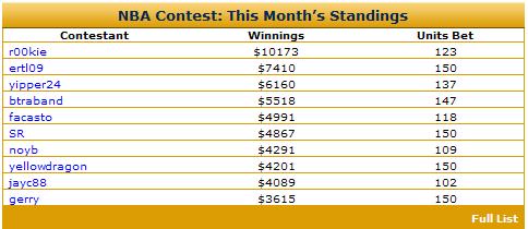 The contest would be more genuine and enjoyable knowing we arent going to see a guy start the last 12 days of the month and win 12 straight days hitting every monster longshot and never losing on a fav but never seeing his picks before the game tips off.....Who can we notify to clean this up?