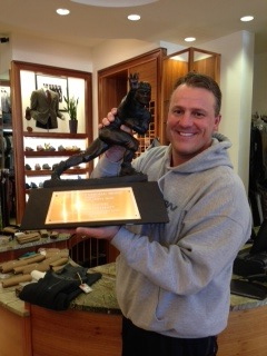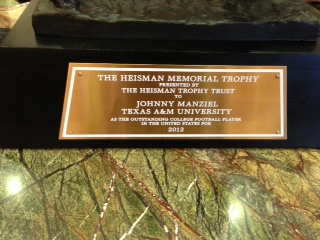 So yesterday afternoon we run into town to do a few things. I ran by a men's clothing store where I shop a lot to return a birthday present. I've known the owner for years, and I knew his nephew was a pretty good football player. What I didn't know, however, was that his nephew was going to be leaving his latest trophy sitting around the store for the afternoon.....