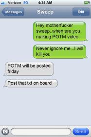 As you may or may not know, Sweep had volunteered to run the February POTM, as well as do the obligatory video. Well, lil' sweeper soon found out this task isn't nearly as easy as it sounds. That fact combined with his massive hangovers had pretty much convinced Sweep to just say piss on it.....and leave all of the rest of SBR standing there with their cokk in their hand.