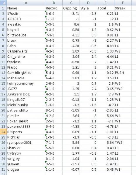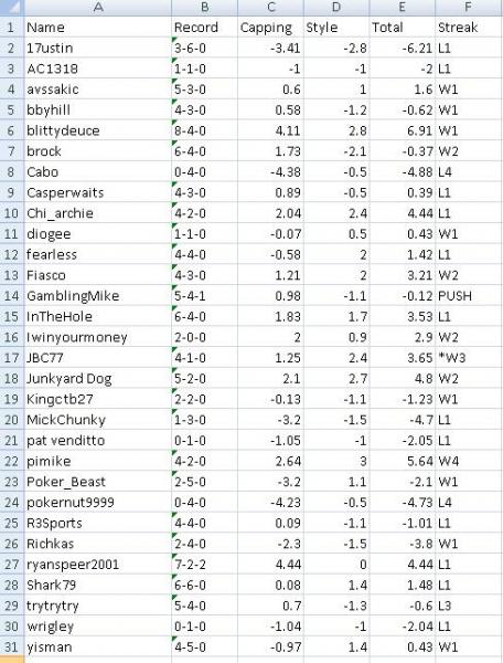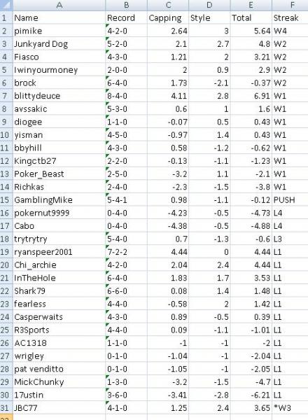also, don't forget to take a look at the contest ending date. if you don't make 40 picks by then, each pick under 40 is counted as -1 unit loss plus -1 unit penalty. (if i think you're intentionally not making picks to win prizes, i'll disqualify you from the prizes)Comment -