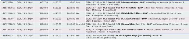 ALSO, one important thing....there is no record for the Kings series bet on those sheets because the bet was made two weeks ago and that is a summary for the last two days....so the numbers will be off by 1-0 and +$100Comment -