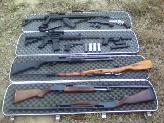 Saiga 12ga semi-auto AK-47 style shotgun, with 8" barrel, folding stock, and 20-rd drum. I plan for this to be my next purchase...they are fun as hell to shoot.Comment -