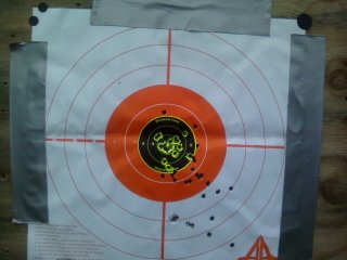 With that said, I went out and played with some of my guns today! Had a blast. I got a cheap scope for xmas that mounts on the carry handle of my ar-15, and went out to sight it in at 100yds. I have a few pics, but they are from a cell, so kinda small.Comment -