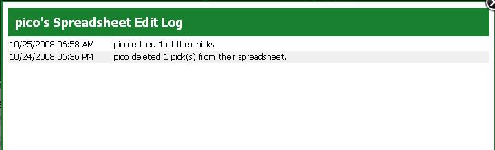 #22Very true. The only thing that sucks is if you change the sport it counts as an edit since you have to change it and click save. I know there have been times when I have been entering all of my bets and leave it on nhl or some shit and enter in 20 ncaa picks without noticing it. I can't even view my log for some reason to know if it counts as an edit for changing the sport. I'd be more worried about excessive deletes...not sure how editing can really change anything since your pick is already locked in.Originally posted by InTheHole^ How so? For example, I did an edit search on your and this is what came up. On 331 picks this tells me the edit and delete were honest. If you has 200 edits I would be concerned...is there another way?Comment -