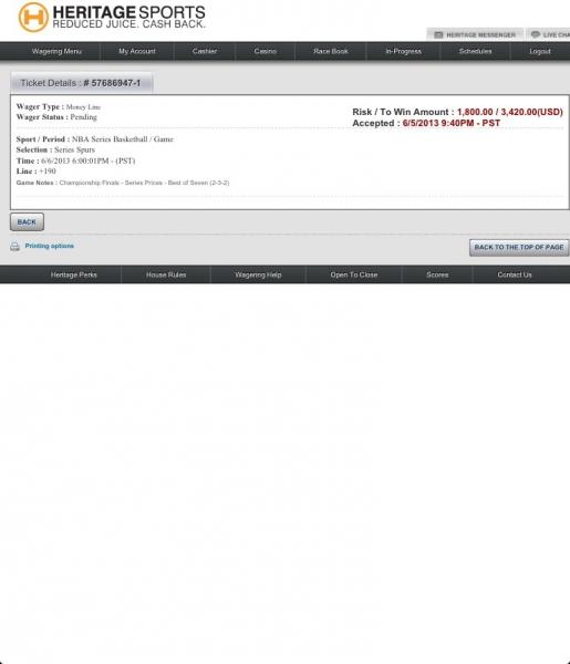 #46this time u will cash. not going to wish u luck because Spurs winning the Heat will have nothing to do with it.Comment -