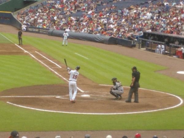 Good seats, good weather lots of people. Braves up 1-0 in bottom of 6th. Pirates have yet to master a hit.