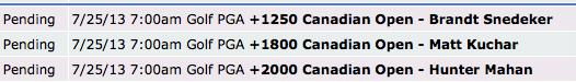 On the bright side, at least my other futures on Snedeker and Kuchar look good and one of them will likely win. If Mahan stayed in, though, I'd pretty much be guaranteed to hit one of those 3.