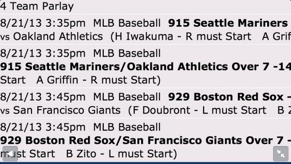 191482882-1 8/20/13 3:52pm $5.00 $297.13 Pending 6 Team Parlay