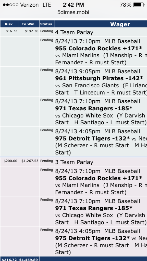 I know it doesn't sound like it but I am a Mets fan but more of a gambler but even more of an over all baseball fanatic and this Tigers line up is a buzz saw right now. I just don't see it happening bro. I hate for any fellow gambling comrades to lose cash, so I hope ya get em, just don't see it.