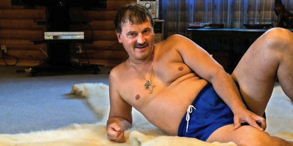 The guys wearing a towel so we can't see his physique, or lack thereof.