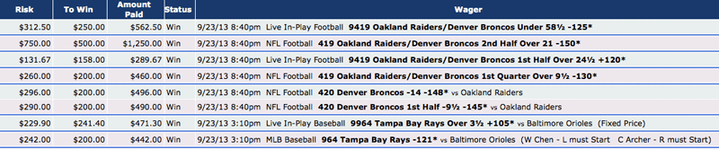 if you parlayed you're entire balance on Denver spread w/the over for full game weeks 1, 2 and 3.... you would be 3-0... unless for some reason you had Denver -16... then you're just stupid for getting in on the game so late.