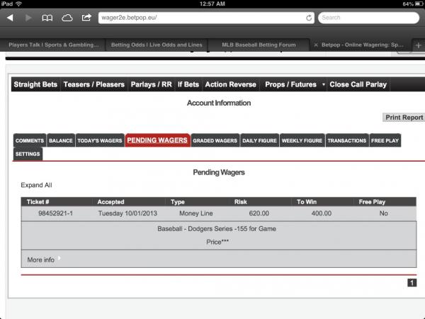 Dodgers -155 to win 4 bills