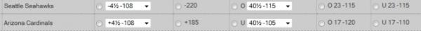 Seattle Seahawks | Arizona Cardinals Over 17.5 -108 Under 17.5 -108 |