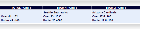 | Thu 10/17 | 303 | Seattle Seahawks | Over 41 -102 Under 41 -108 |