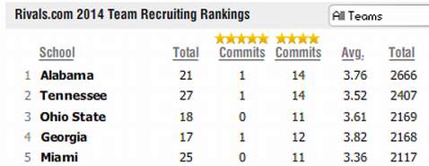 SEC is a beast though, if by nothing else they can influence the ratings by securing commitments from more guys - a numbers game.Comment