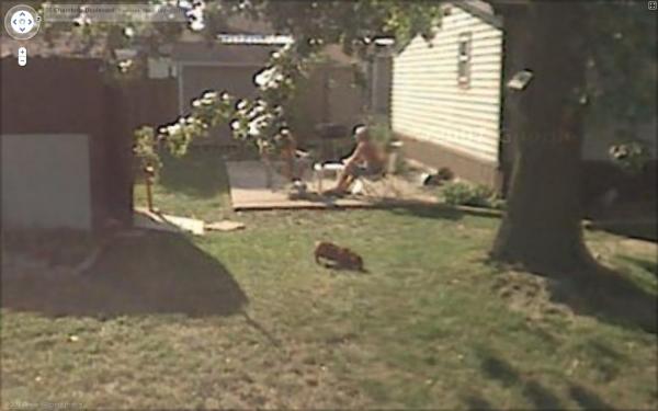 Wow, what are the chances he's sitting there when google's buggie drives by...even his little fukin dog..