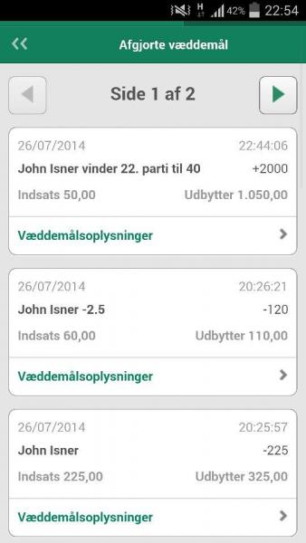 253928372-1 7/26/14 9:25pm $100.00 $100.00 Pending 7/26/14 8:00pm Live In-Play Tennis 551 Dudi Sela +100* <small>vs</small> Benjamin Becker 253920352-1 7/26/14 8:47pm $50.00 $130.00 Pending 7/26/14 8:00pm Live In-Play Tennis 552 Benjamin Becker +260* <small>vs</small> Dudi Sela Comment -