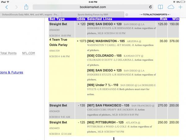 Dollars2Donuts Daily NBA, NHL and NFL wagers