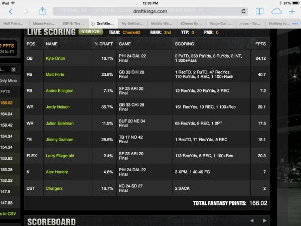 | DST | Lions | 0 | swap out |