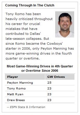 #53prior to this season, mark sanchez had the same number of game winning drives as romo since 2009.Originally posted by KKoz9Proof of this statement?