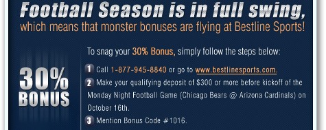 No need to post sites that have standard reloads for every deposit or month, as we all know about those (i.e. Bodog, Bowmans, VIP, Intertops, etc). I just thought it would be good for us to start sharing the "one off" and unexpected reloads that come up from time to time.