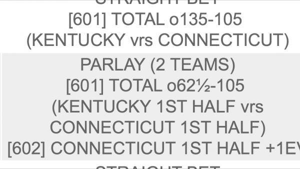 #1Take UCONN Money Line +130 then grab Kentucky LIVE in game at plus moneyTags: None -