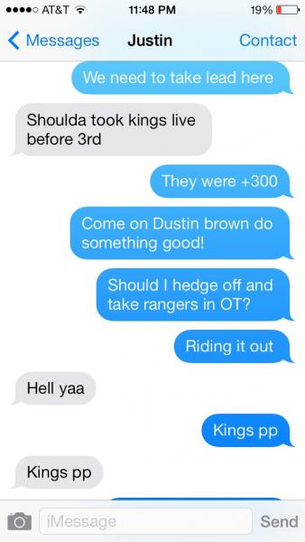Did I have the Rangers, yes, so I'm a little sour, but life will move on.