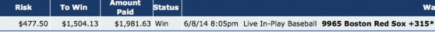 #10Good job bro! Did you bet during the game? I know some books offer live MLB betting.Originally posted by riffraff24YUP!!!! Idunno who I love more right now. Joba or Papi