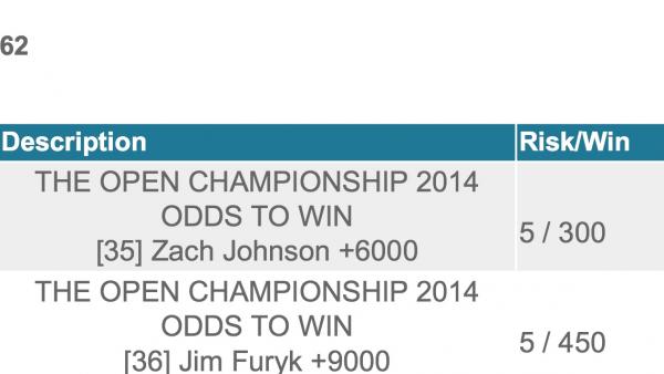 #11Haver Furyk top 20, Westwood top 20, Furyk over Stricker, Blixt over English, Matsuyama over McDowell. Took a small flier on Westwood to finish highest in GB & Irish players.Comment -