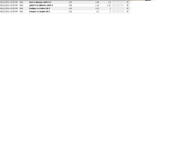 06/21/2014 12:05 PM MLB gIANTS VS dBACKS oVER 9 -105 1.18 1.12