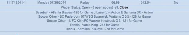 | Line: | Karolina Pliskova 07/28/2014 14:00:01- (EST) |